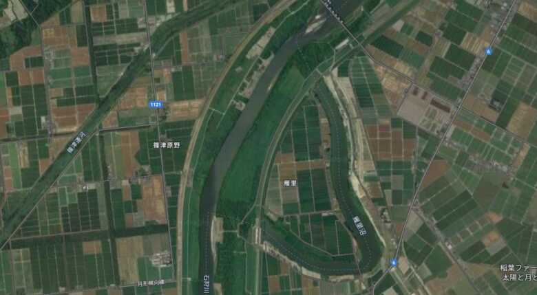 (以下の写真は、地理院の1970年代の航空写真より:https://maps.gsi.go.jp/#14/37.826667/139.166393/&base=ort&ls=ort%7Cgazo1&blend=0&disp=11&lcd=gazo1&vs=c0j0h0k0l0u0t0z0r0s0m0f1&d=m :新潟を流れる阿賀野川流域)