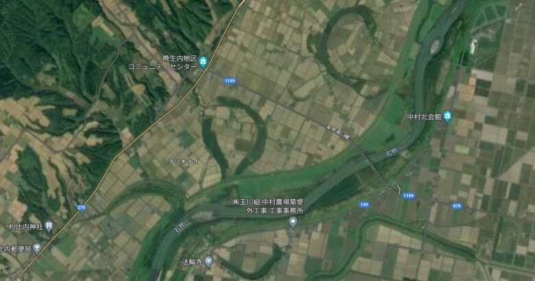 ちょっと川越近辺から遠く離れますが、三日月湖で有名な、別記事でも取り上げました、日本三大河川の1つ・石狩川も取り上げさせて頂きます。ご存じの方も多いと思いますが、石狩川には、沢山の三日月湖があり、観光地としても有名な場所もある様です。以下の航空写真にある通り、これだけ多くの三日月湖があるという事は、恐らく「多大な河川との闘いの歴史」があったのだろうと、想像してしまいます。