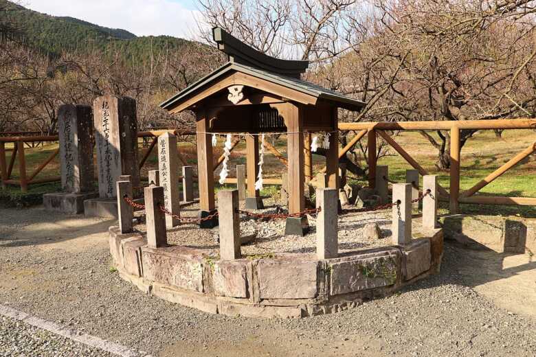 道真が京の都を去る時に、庭に植えられた梅の木に「東風(こち)吹かば 匂ひをこせよ 梅の花 主なしとて 春な忘れそ」という和歌を詠んだ。その梅が、京の都から太宰府の道真の住む屋敷の庭へ飛んできたという「飛梅伝説」が存在する (略)
